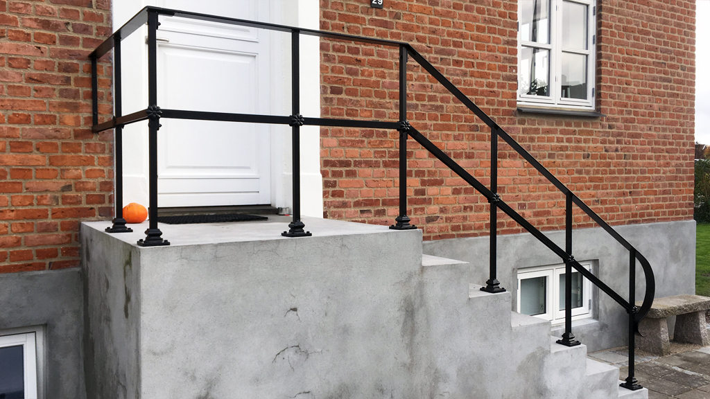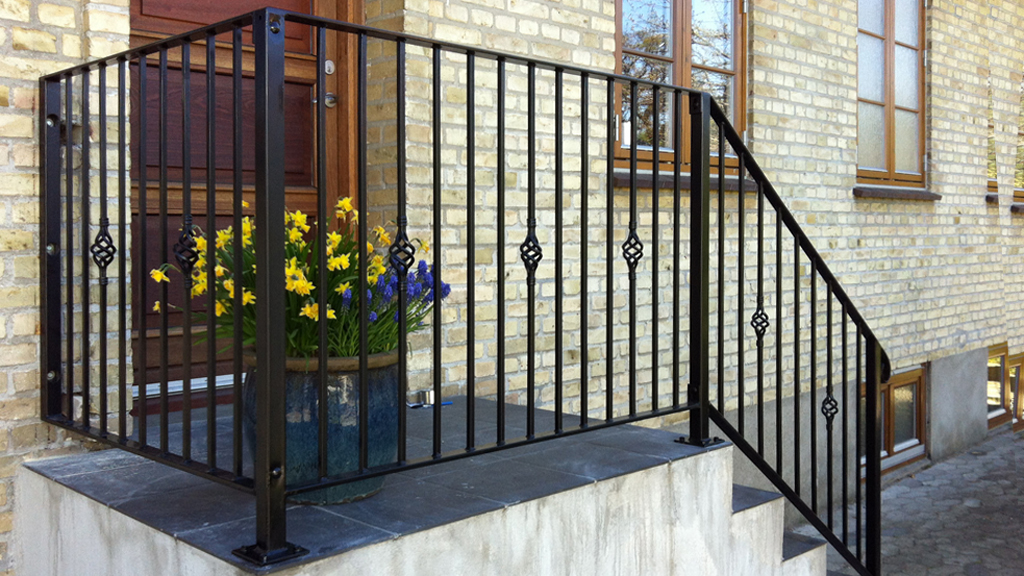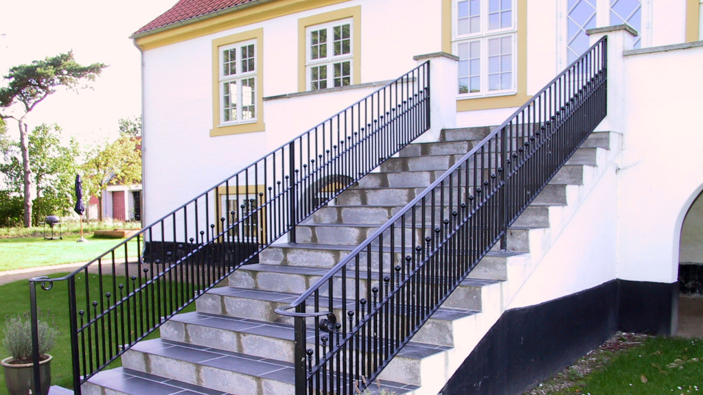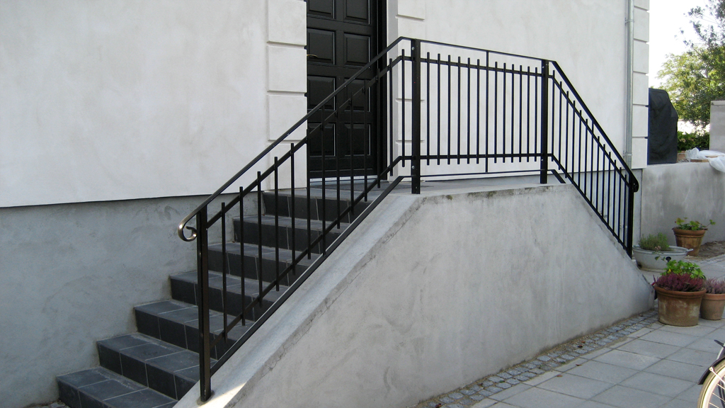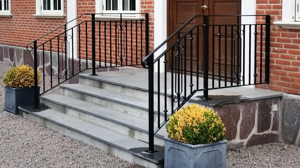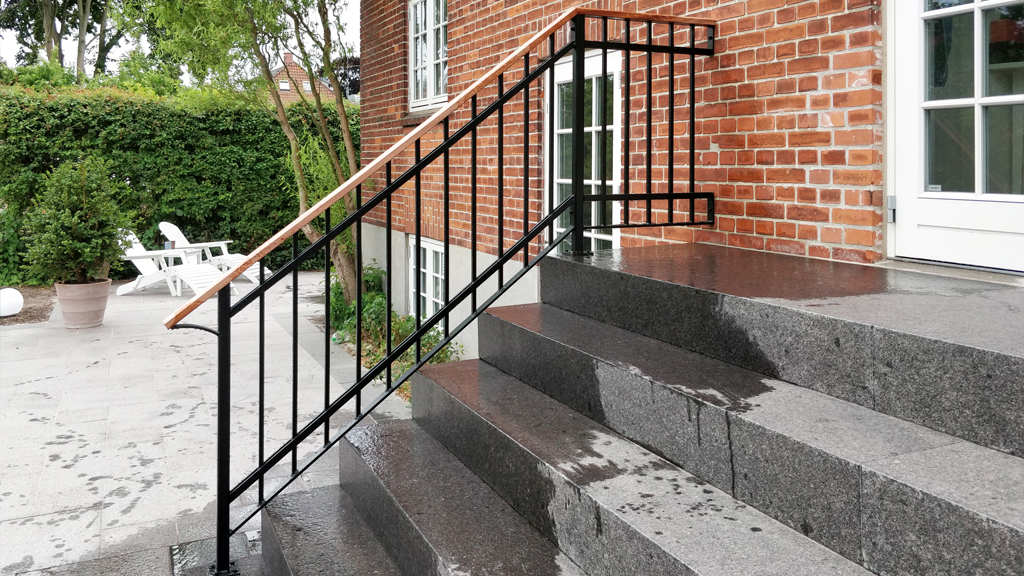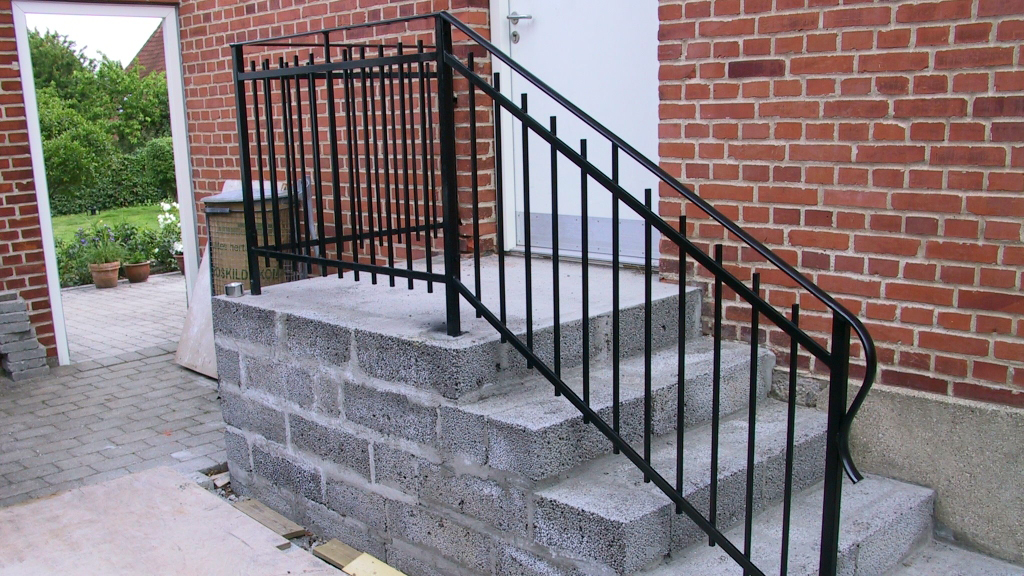 Gelændere kan også fremstilles til at blive montere på siden af trappens fundament.