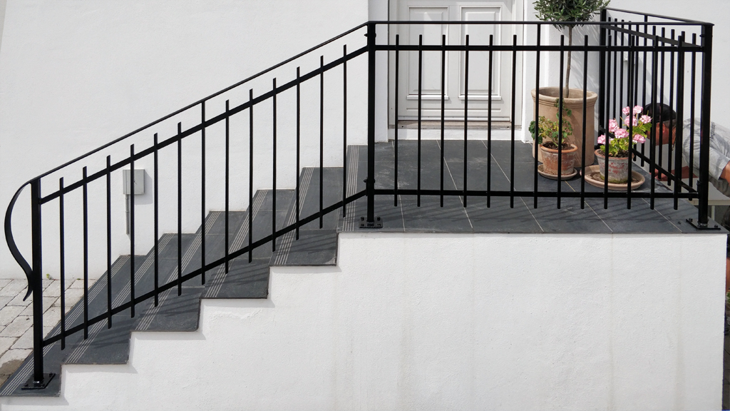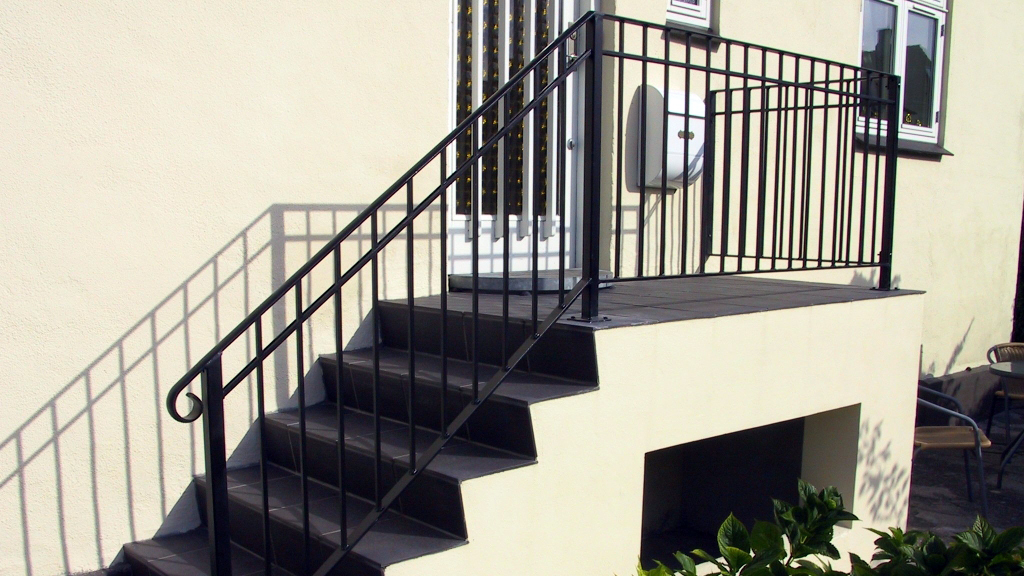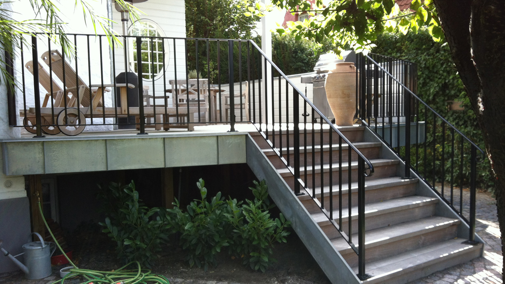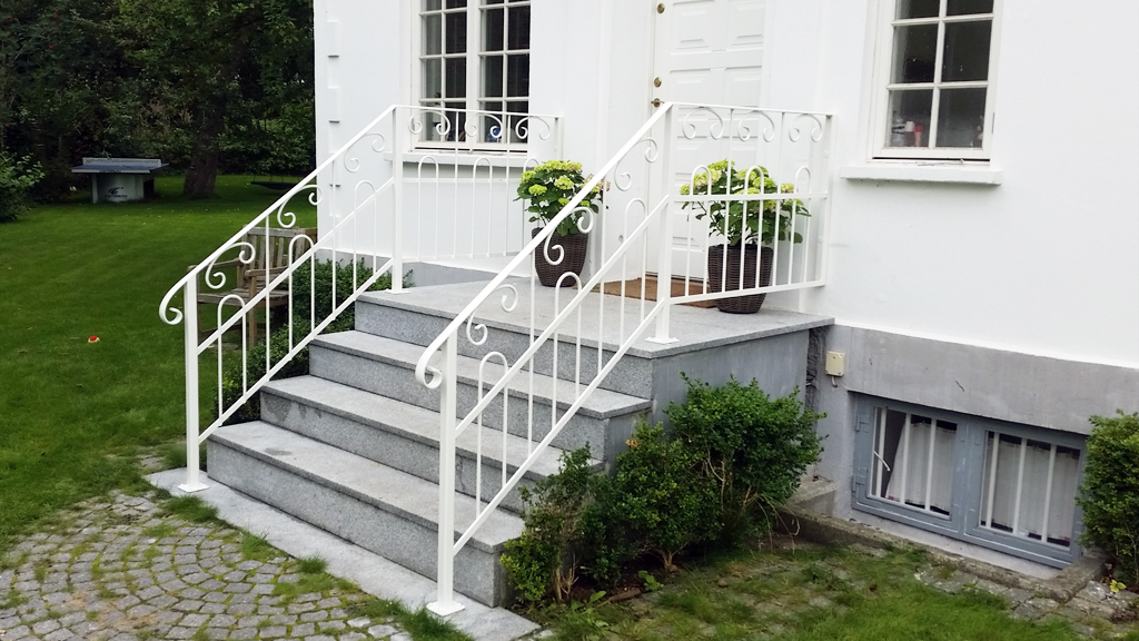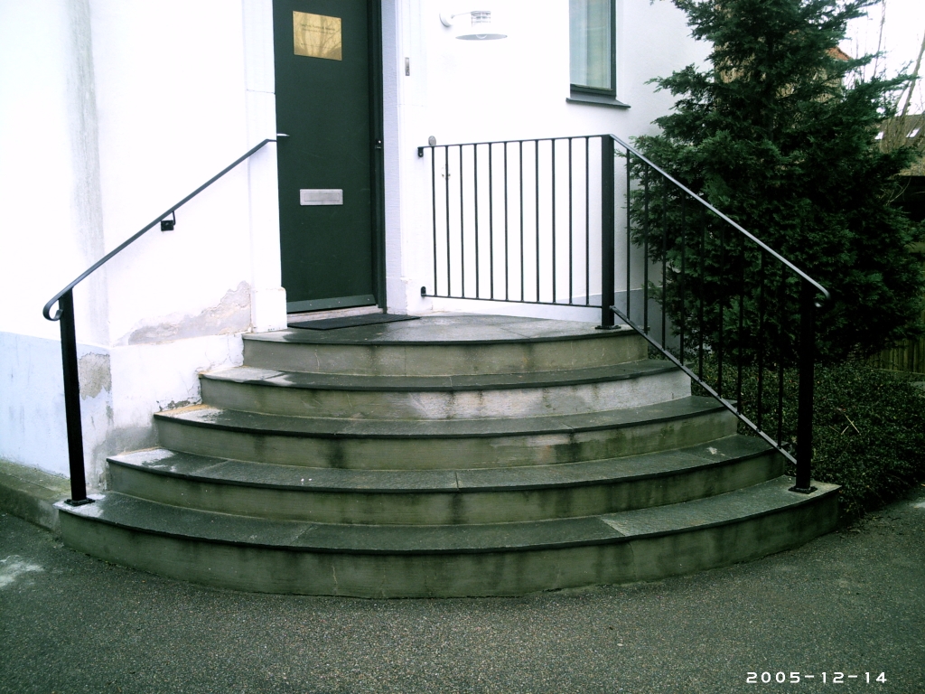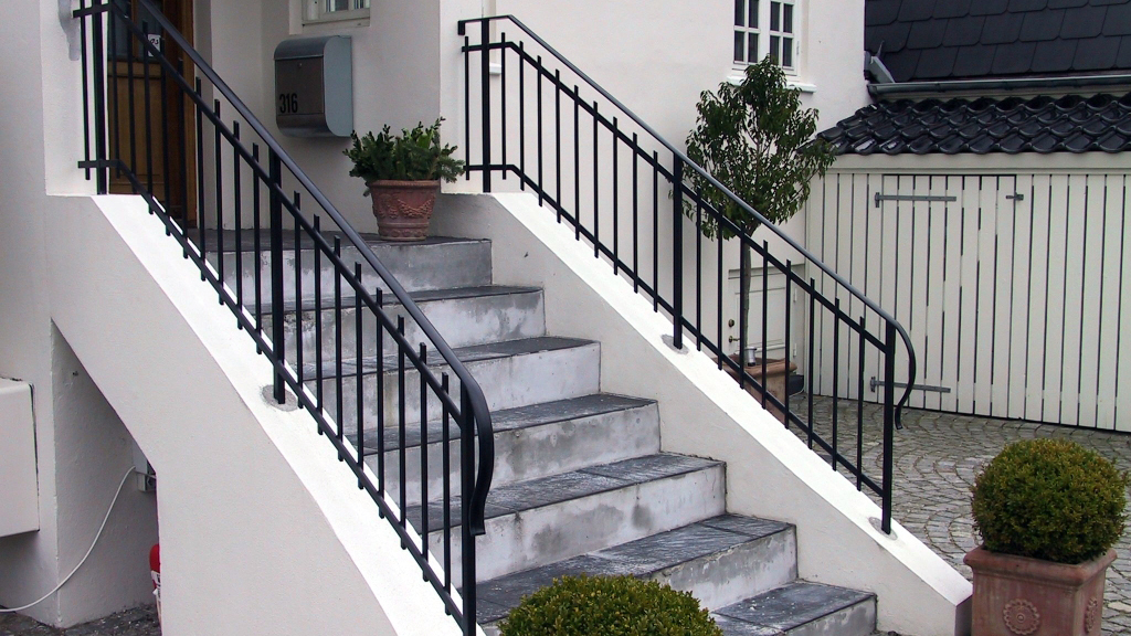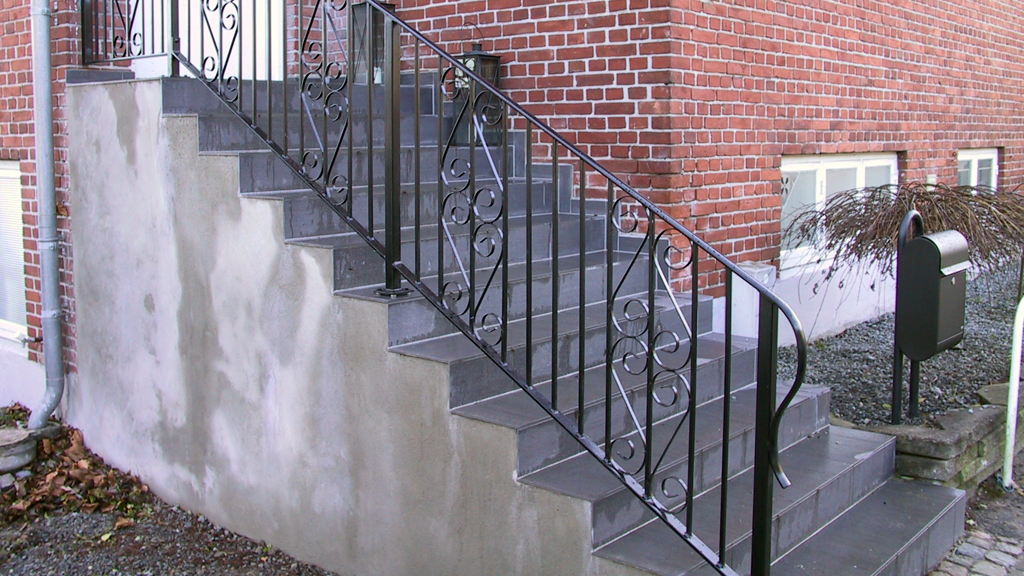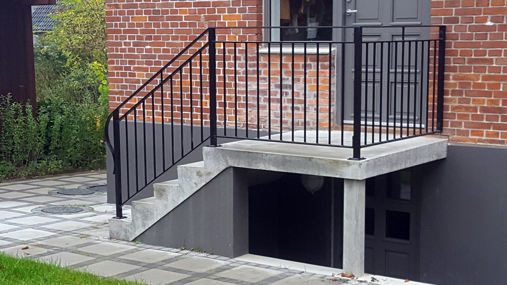 Gelændere kan også fremstilles til at blive montere på siden af trappens fundament.
