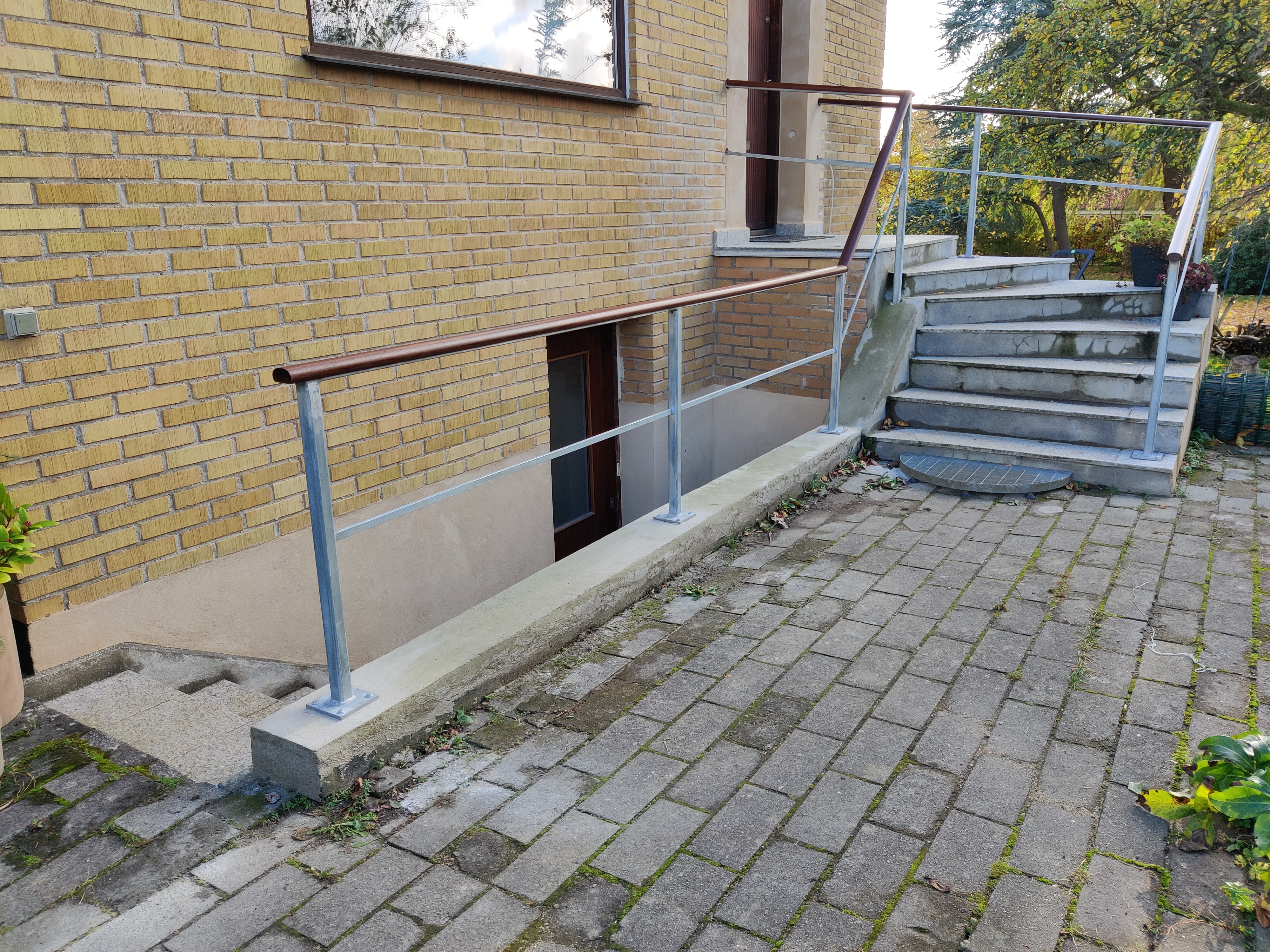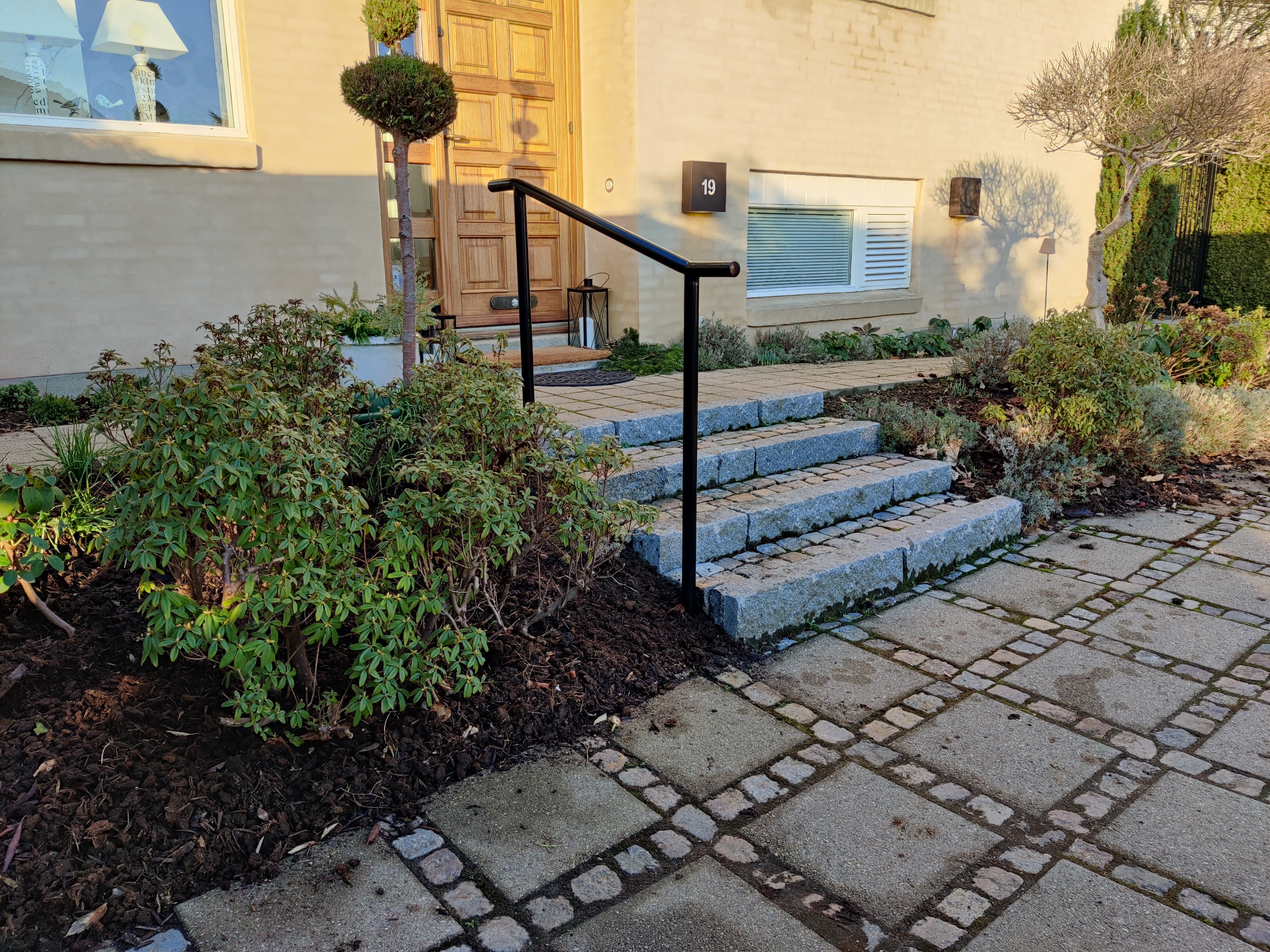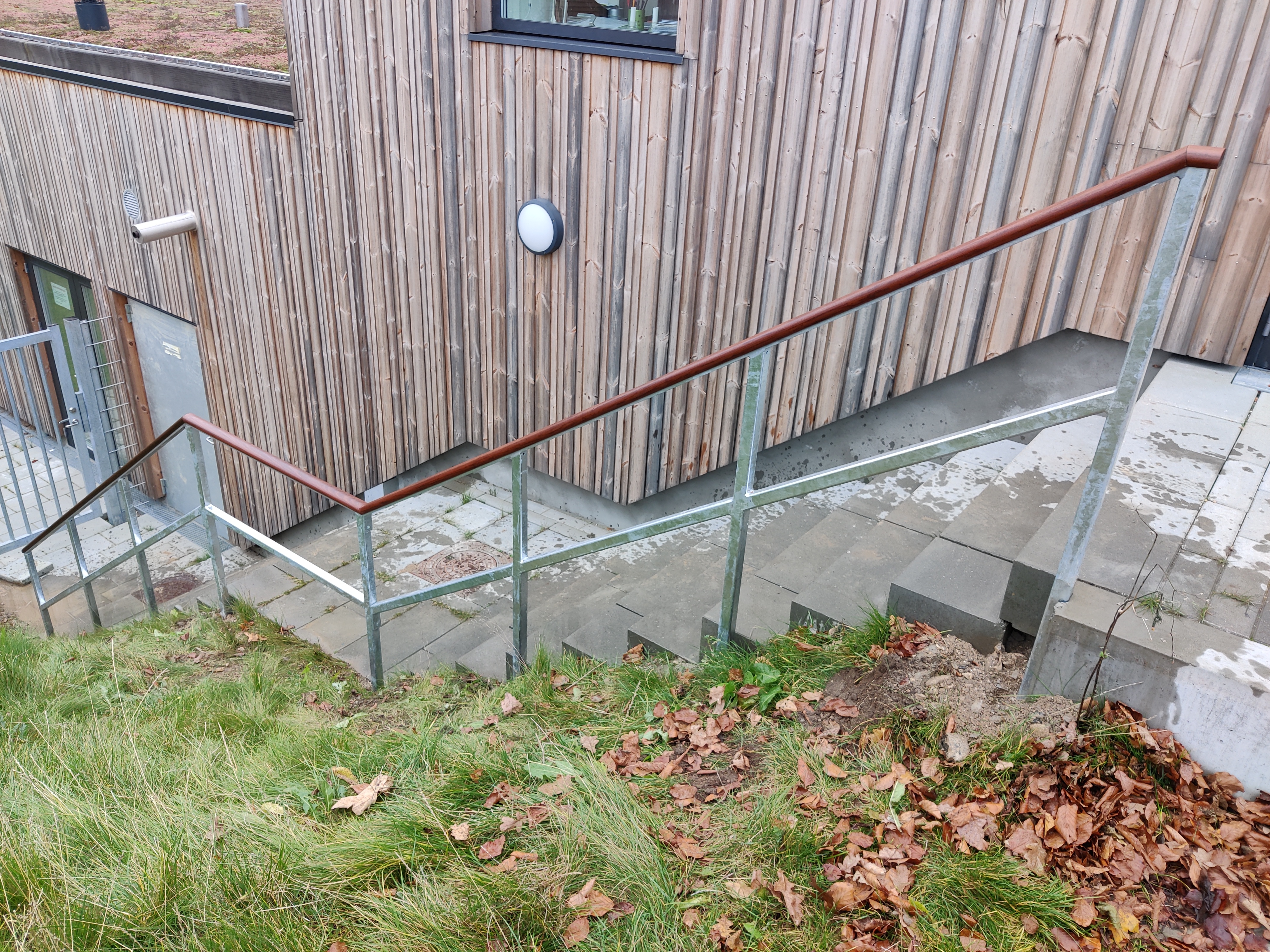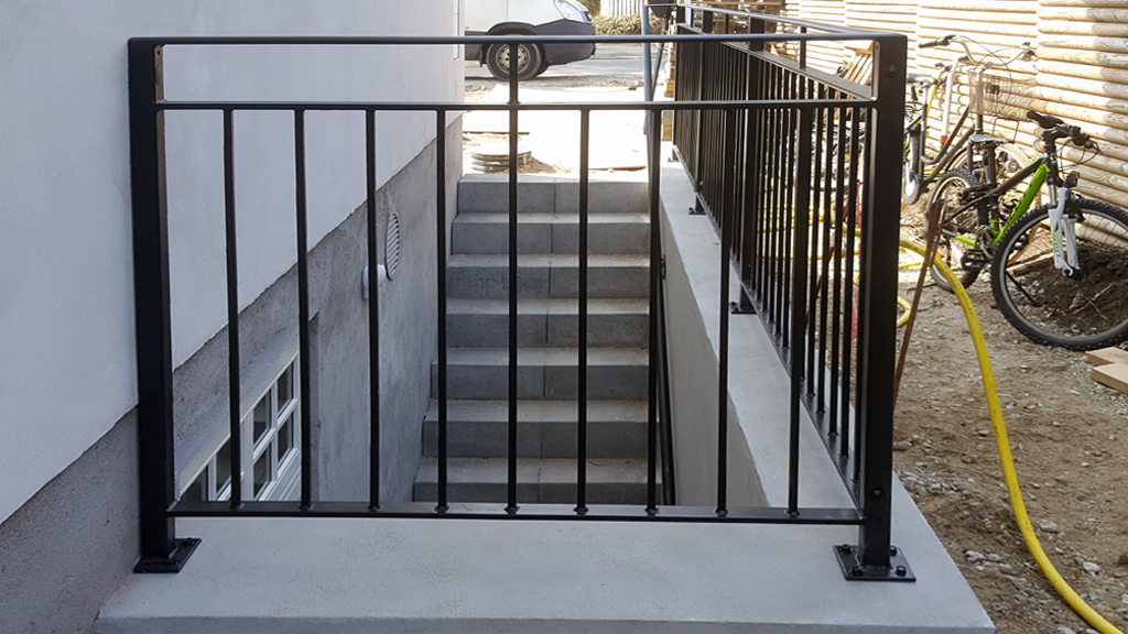 Gelændere kan også fremstilles til at blive montere på siden af trappens fundament.