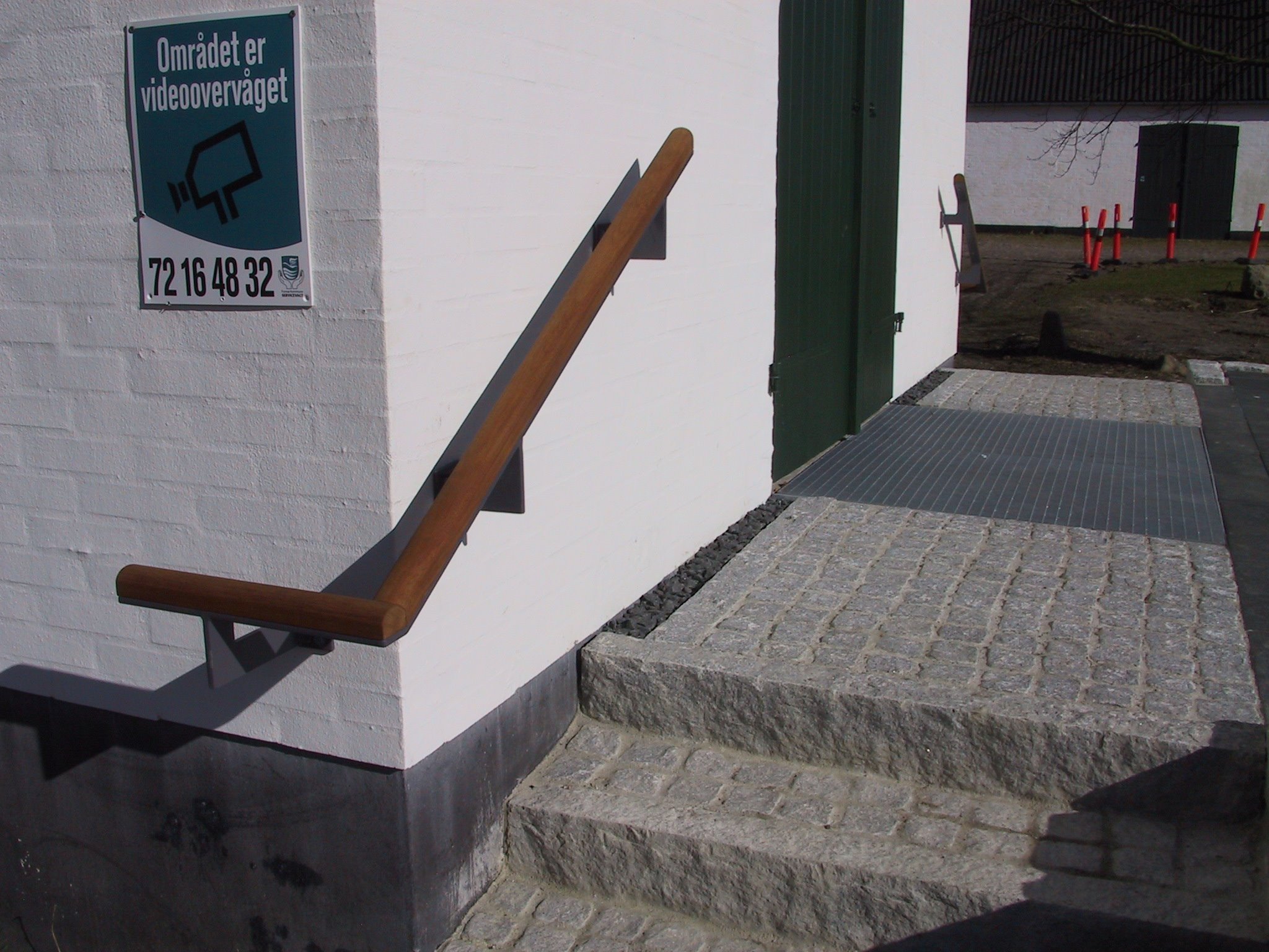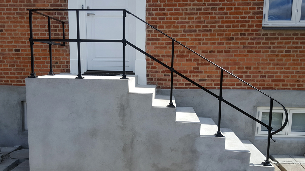 Ofte monteres håndlisten på væggen ned langs trappetrin, men de kan også leveres med søjler enten til nedstøbning eller med fodplade som boltes fast på trappen.
